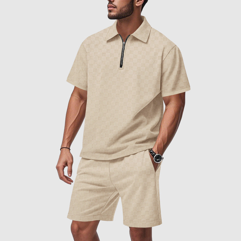 - The set features: A polo T-shirt and tailored shorts with clean lines